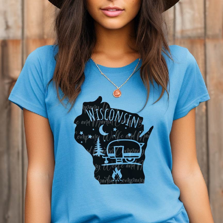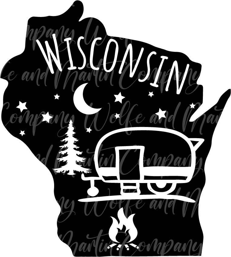 If you love camping in the state of Wisconsin, or you know somebody that does, this design is for you. Embody the essence of the serene woods, the glow of a warm campfire, and the peaceful living that comes along with camping in the great state of Wisconsin. Available as a PNG, JPEG, and SVG file, it is versatile enough to be placed on stickers, t-shirts, totes, home decor, and whatever else you want to attach it to.